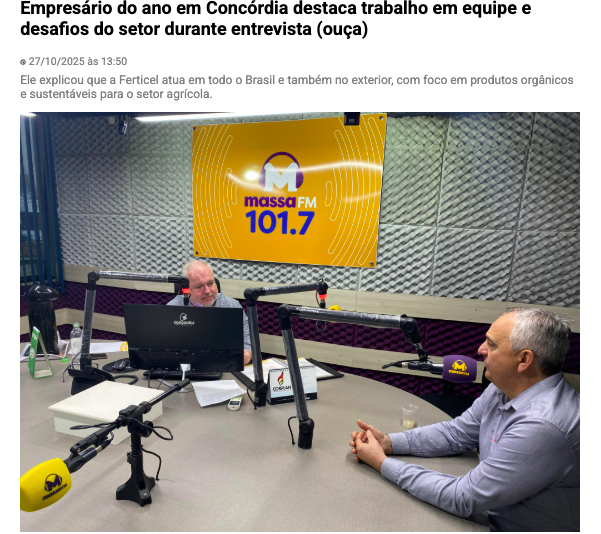 Em entrevista a massa FM o empresário Volnei Enderle, conhecido como Nei da Ferticel Adubos, participou ao vivo do programa Microfone Aberto, da Massa FM, nesta