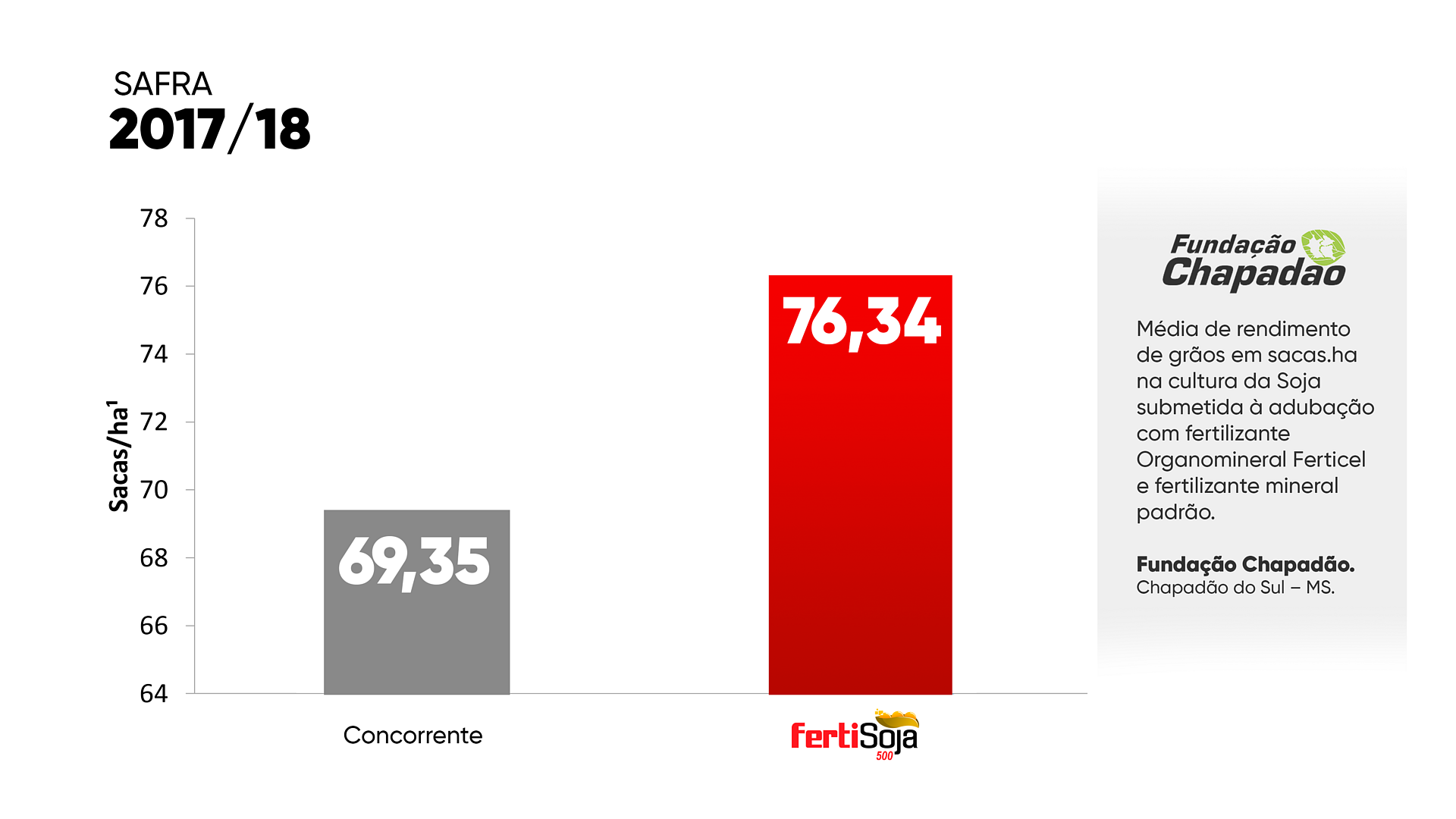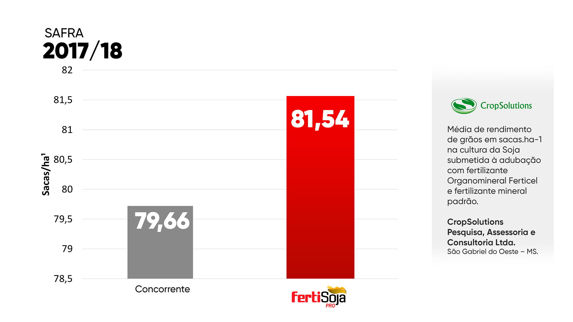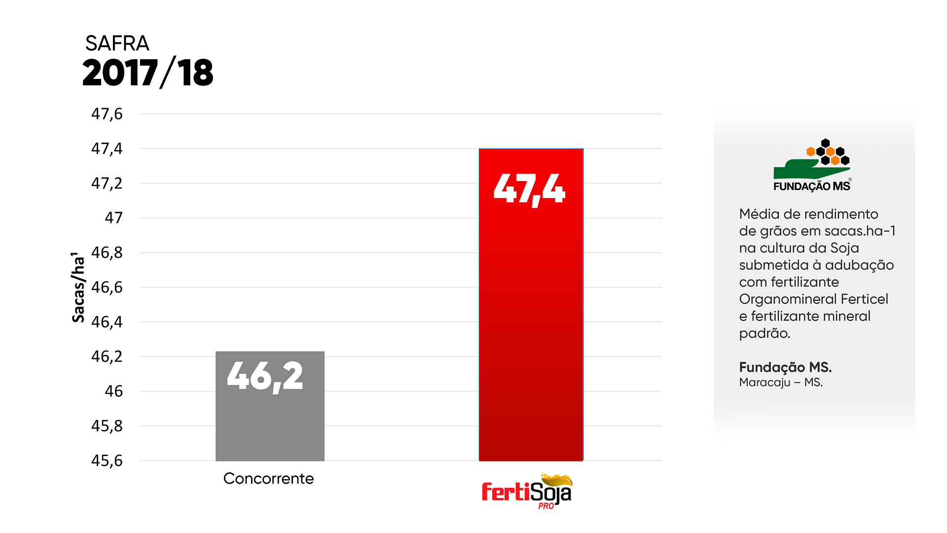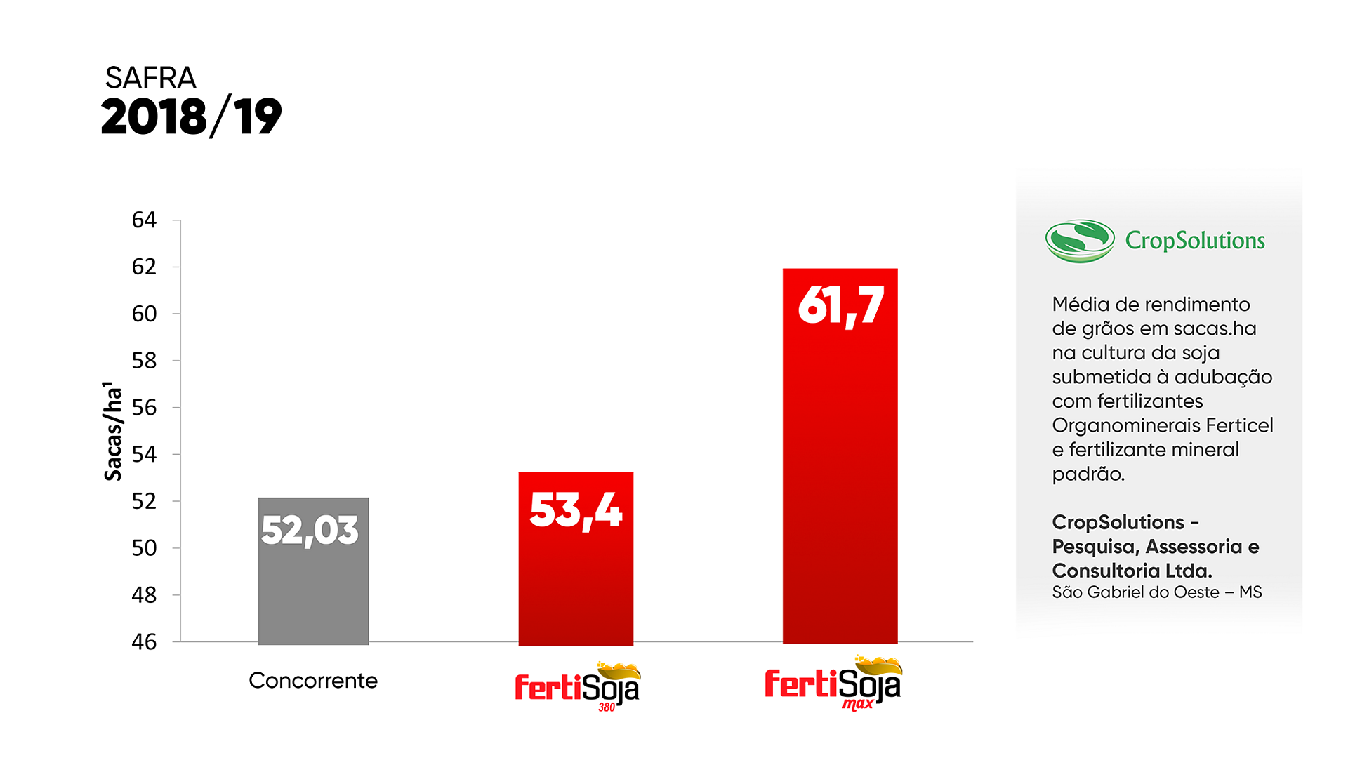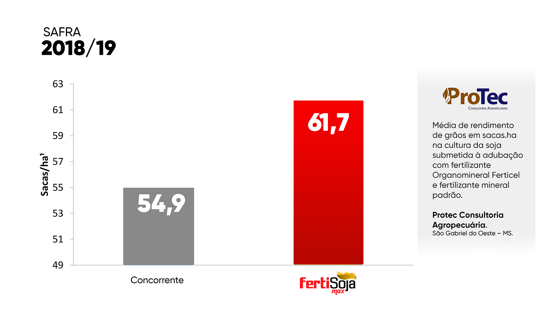 Pela sua exclusiva composição, o Fertisoja além de conter 18 aminoácidos, proporciona menor acidificação e salinidade, resultando em maior aproveitamento e absorção dos nutrientes pela planta.