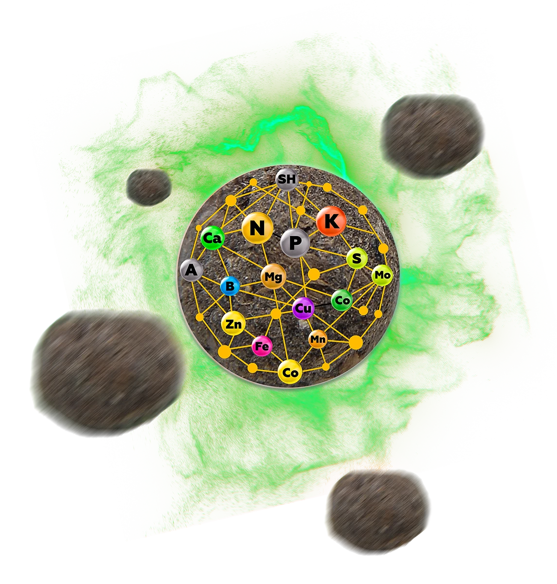 É um produto que proporciona condições para os microrganismos se proliferarem. O aumento da vida biológica no solo potencializa a absorção nutrientes pelas raízes das plantas e também aumenta a autodefesa das culturas.